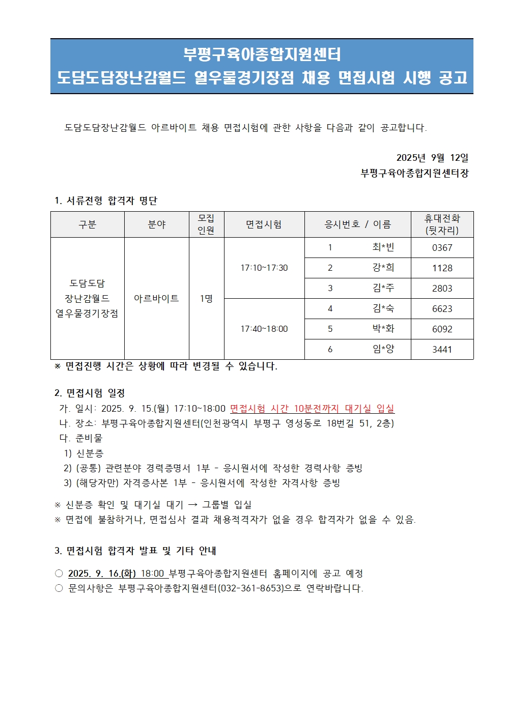 [본센터] 제5회 도담도담장난감월드 직원 채용 면접시험 공고