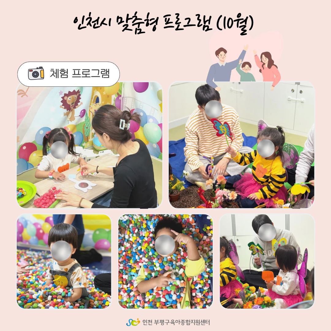 2025년 10월「인천시 맞춤형 프로그램」 진행 사진을 공유합니다. 인천시 맞춤형 프로그램은 부모교육, 부모-자녀 체험 프로그램을 매달 다양한 주제로 이루어지고 있으니 관내 학부모님의 많은 관심과 참여를 부탁드립니다.