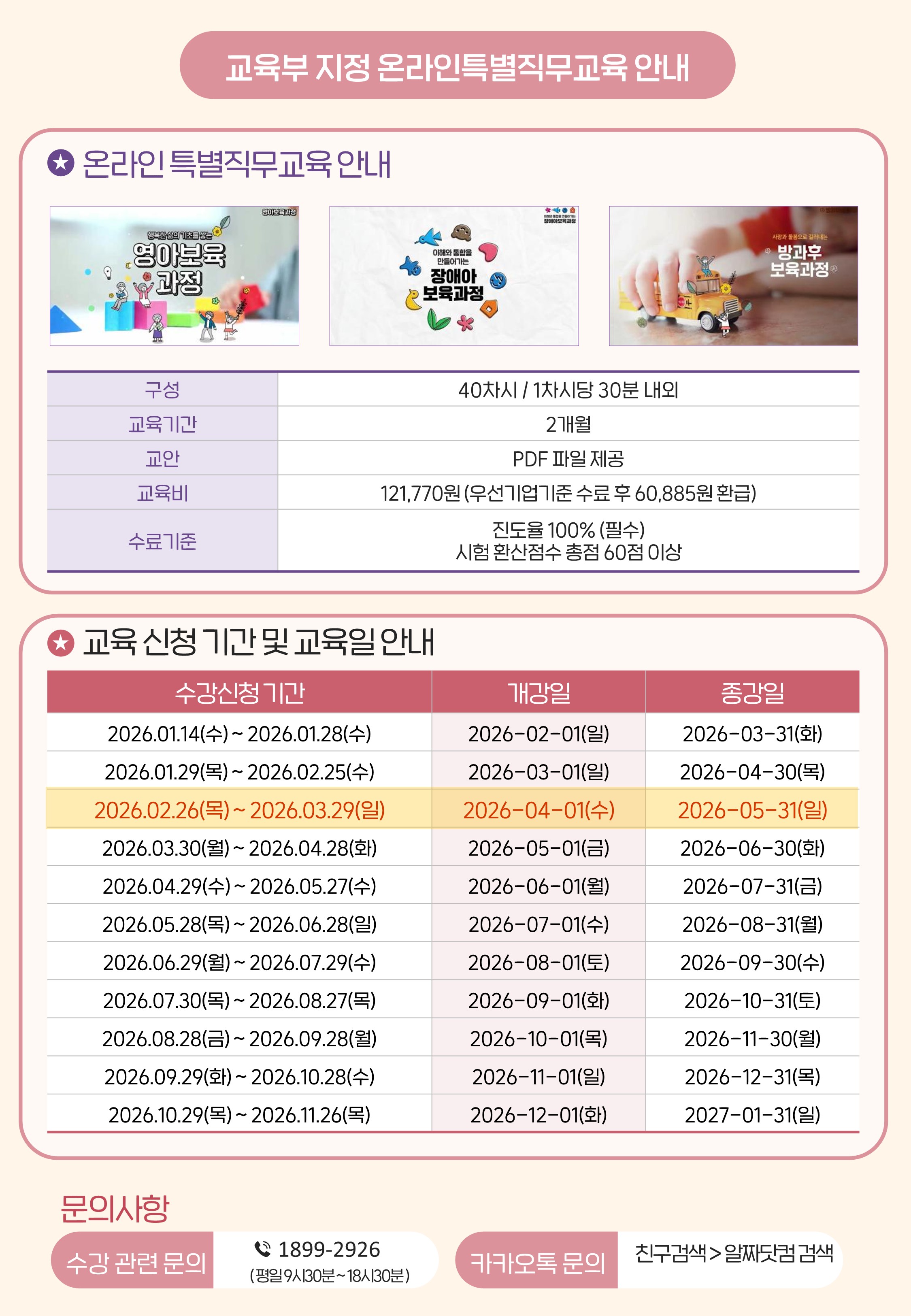 [알짜온라인특별직무교육] 2026년 04월 개강 안내