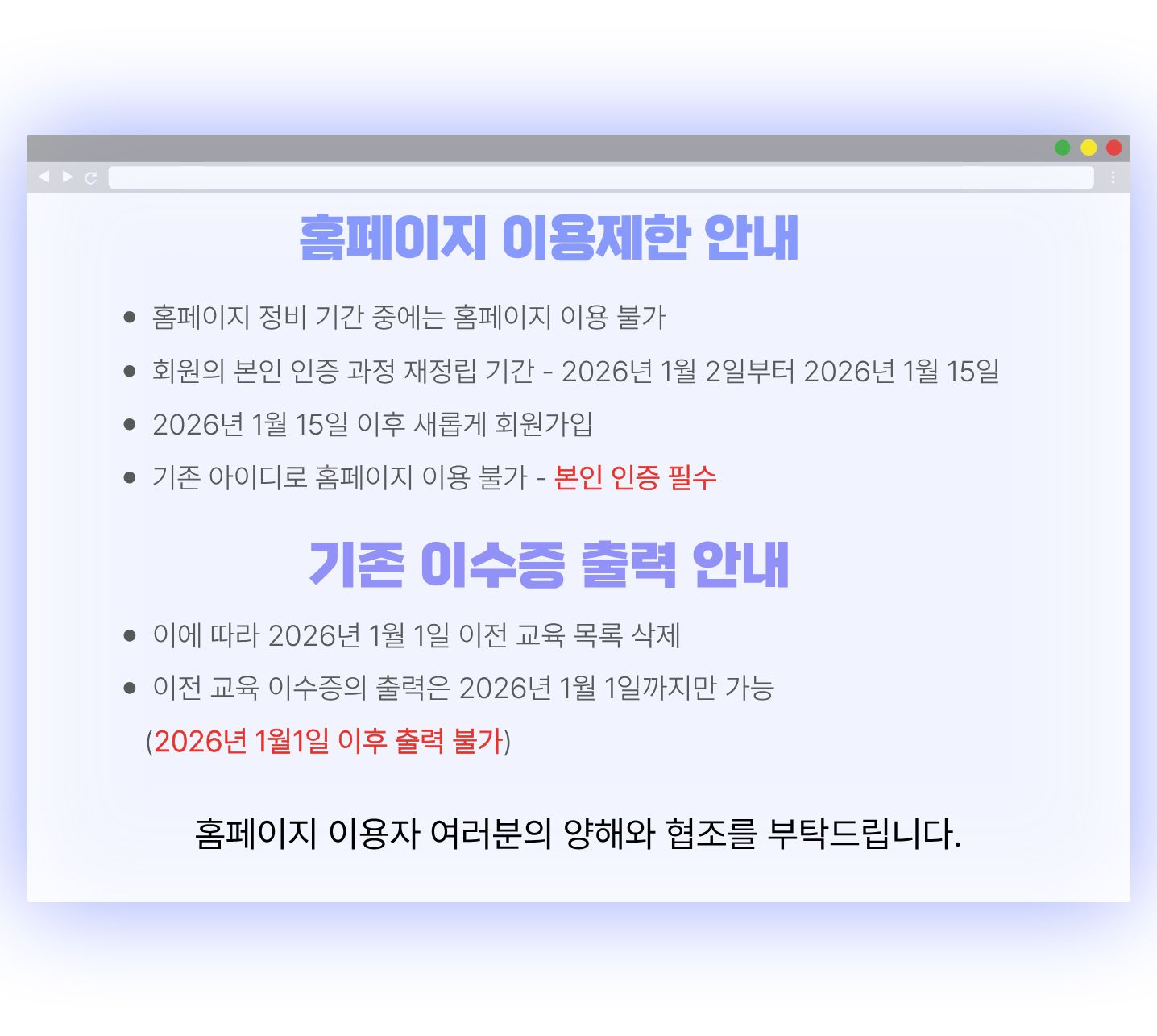 [본센터] 홈페이지 회원정비 안내(전체회원 아이디삭제)