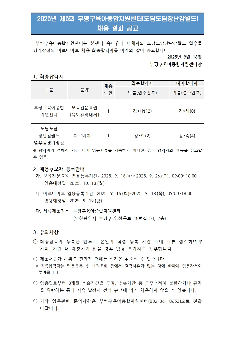 [본센터] 제5회 직원 채용 최종합격자 공고