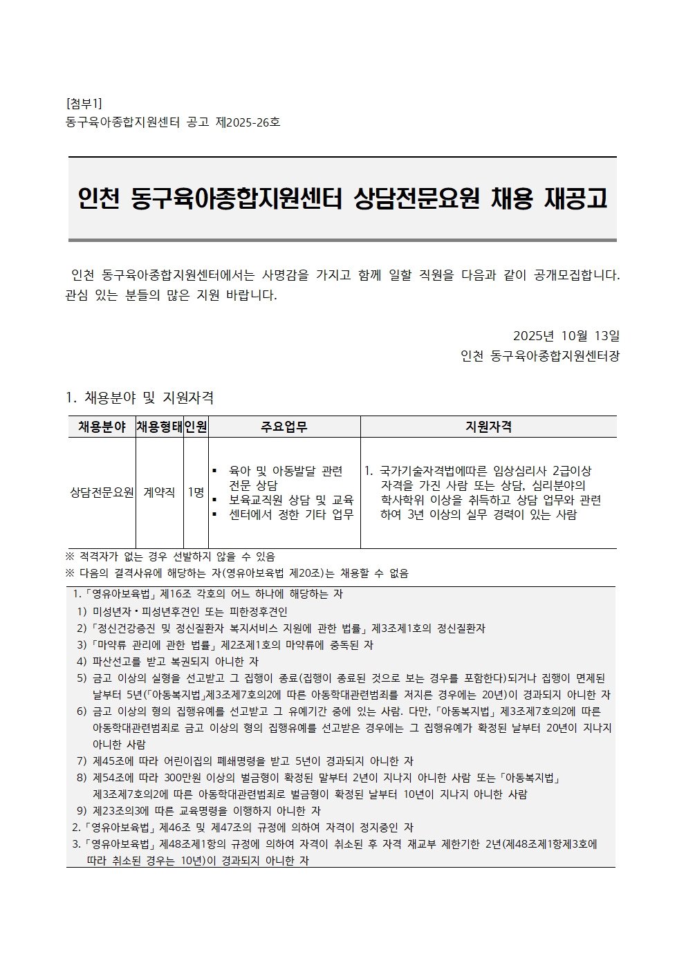 25-223 [붙임1] 인천 동구육아종합지원센터[상담전문요원] 직원 채용 공고문.pdf