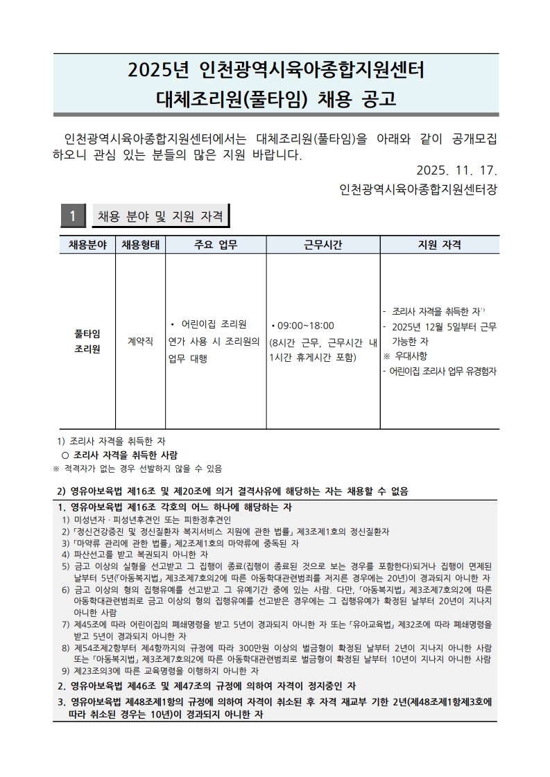 붙임1)2025년 인천광역시육아종합지원센터 대체조리원 채용 공고 (10).pdf