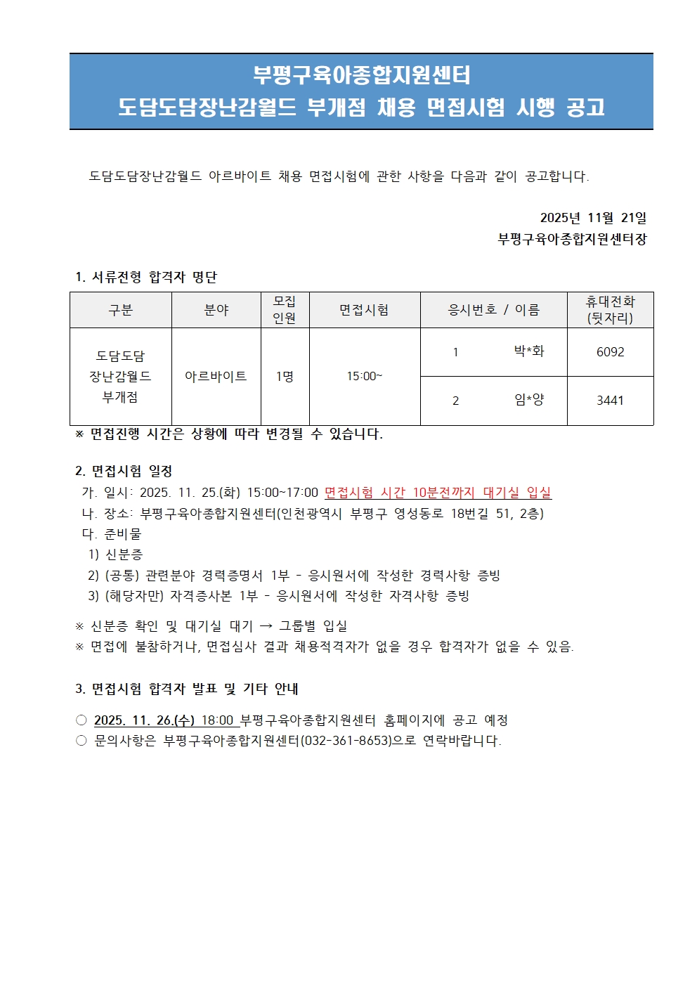 [본센터] 제6회 도담도담장난감월드 직원 채용 면접시험 공고