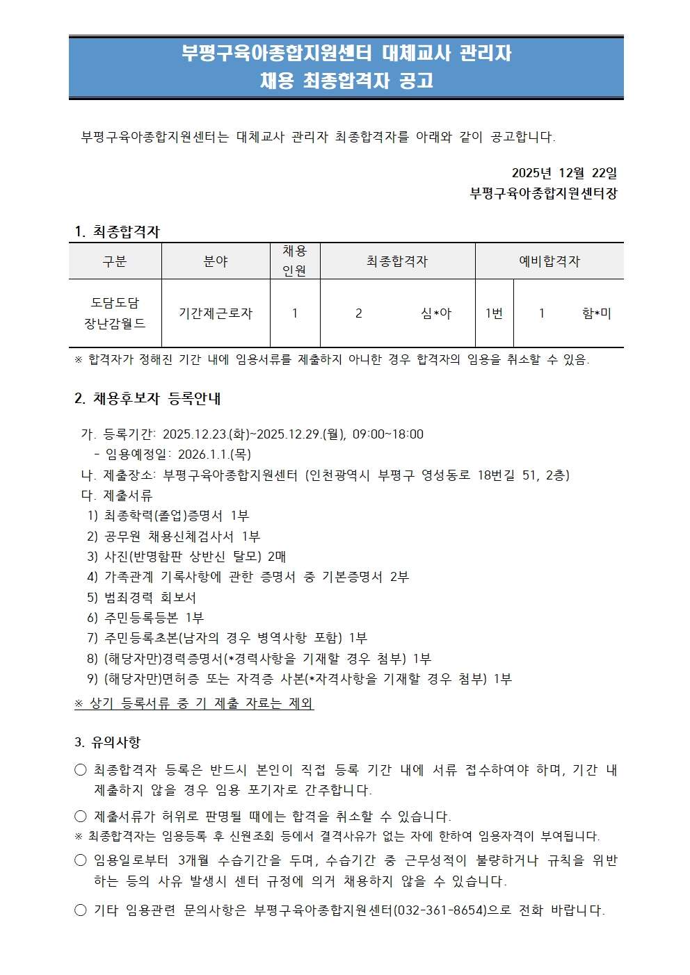 [본센터] 제1회 직원 채용(도담도담장난감월드) - 대체교사관리자 채용 공고