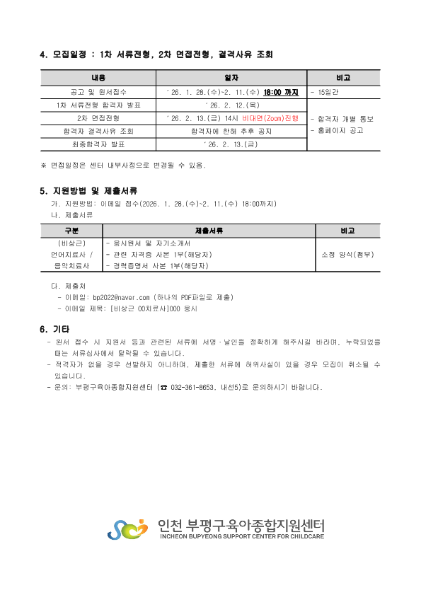 | 2026년 영유아발달지원사업 비상근치료사(언어,음악) 모집 공고 | |||||