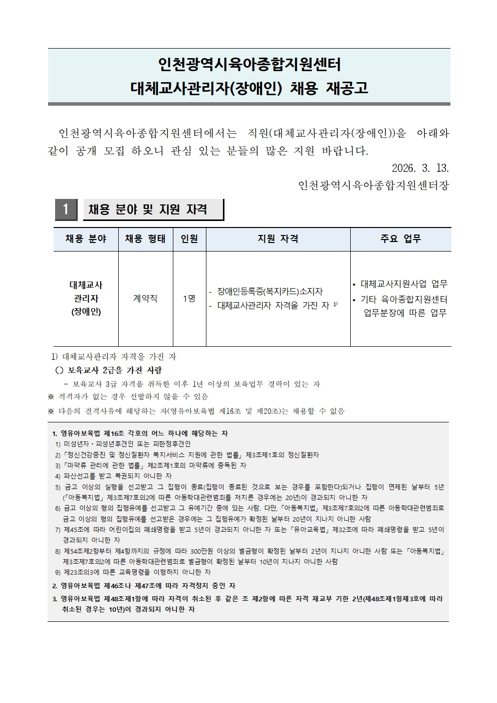 붙임1)2026년 인천광역시육아종합지원센터 대체교사관리자(장애) 채용재공고.pdf
