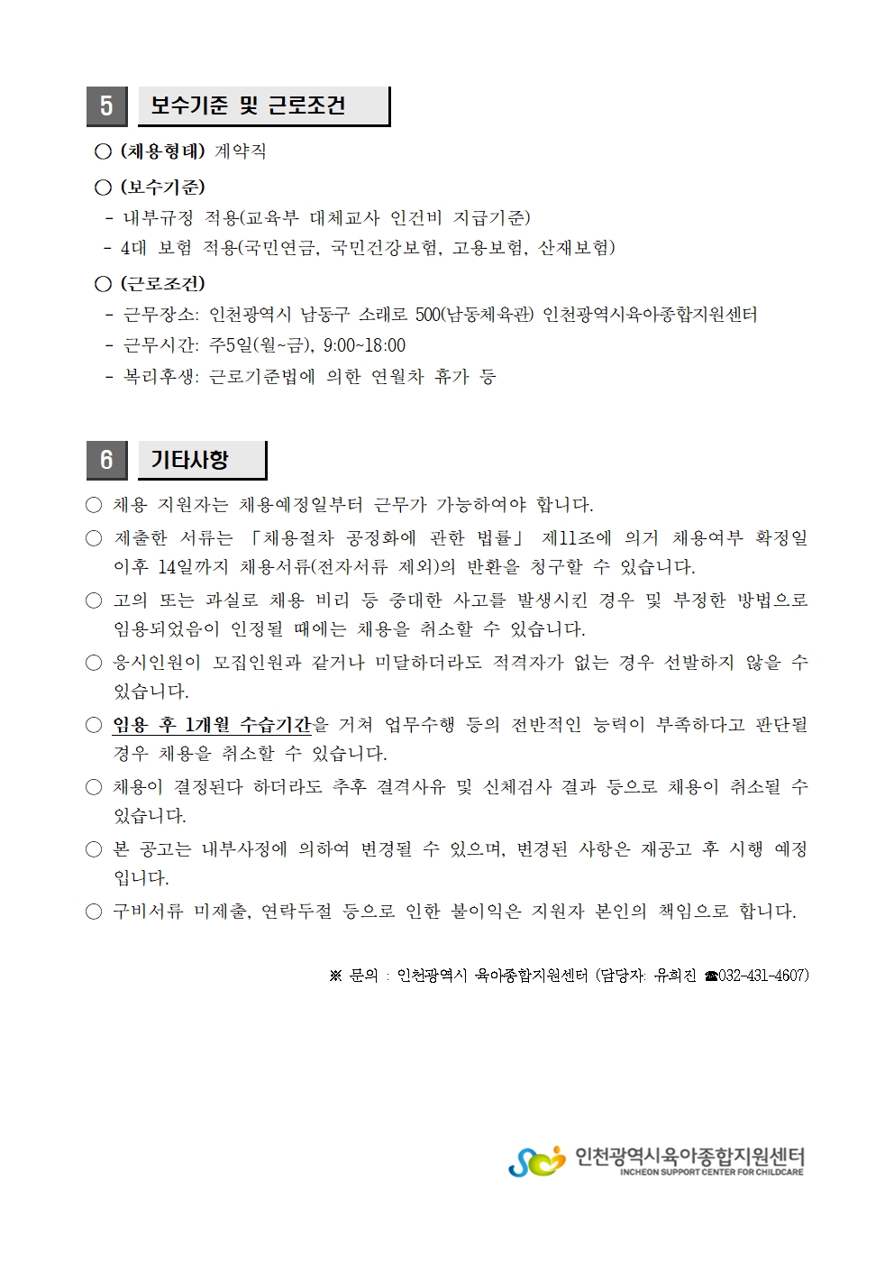 [인천광역시육아종합지원센터] 인천광역시육아종합지원센터 대체교사관리자(장애인) 채용 재공고