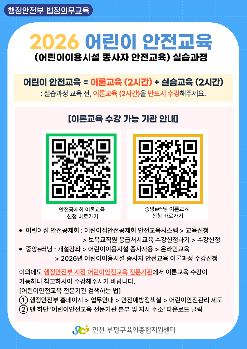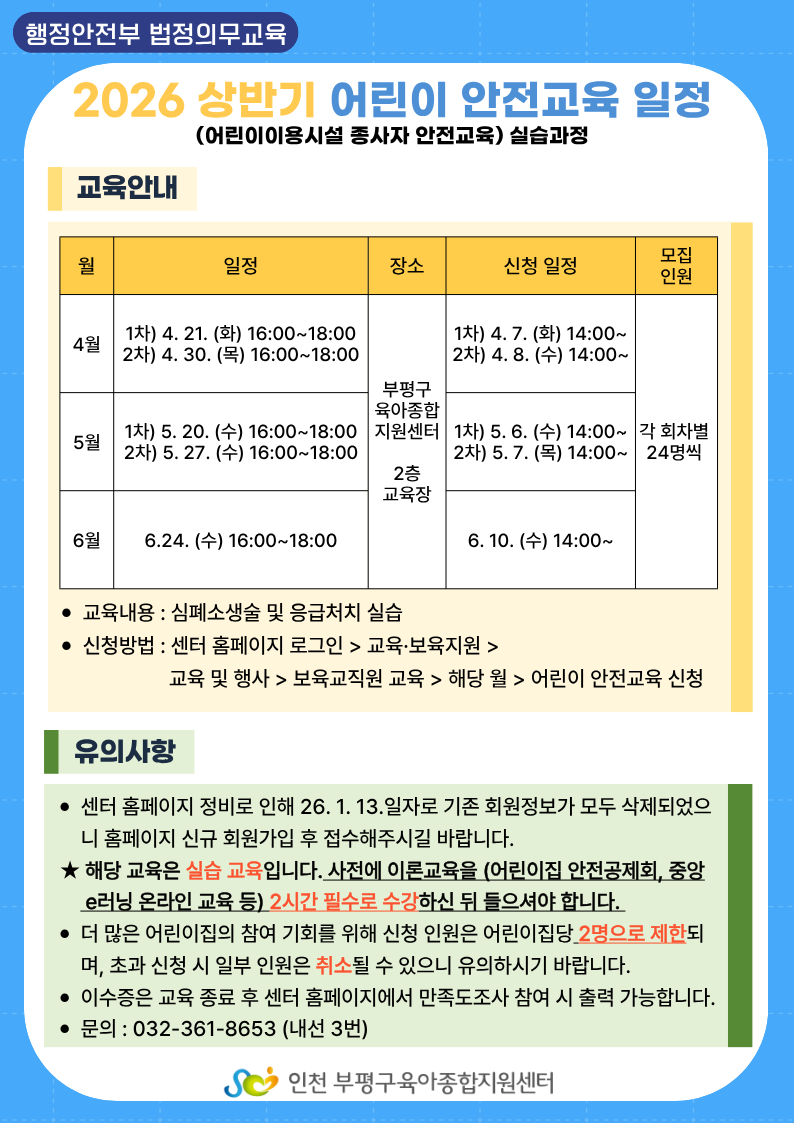 2026년 상반기 어린이 안전교육 (어린이이용시설 종사자 안전교육) 실습과정 안내